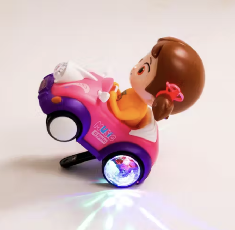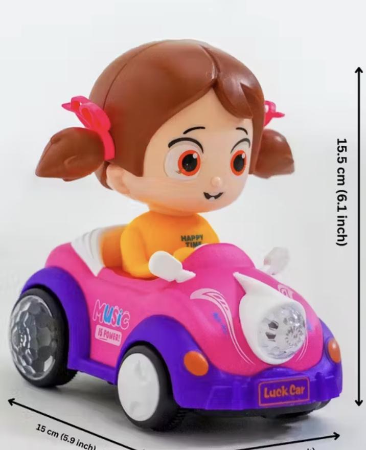 360 degree rotating musical girl doll activity play center toy with flashing lights and car and go action for kids early learning and educational. Girl Toy features bright, colorful 3D lights and engaging music that will captivate your child’s attention. The vibrant lights create a fun and playful atmosphere, making it the perfect toy to enhance your child's sensory development while they enjoy hours of fun.